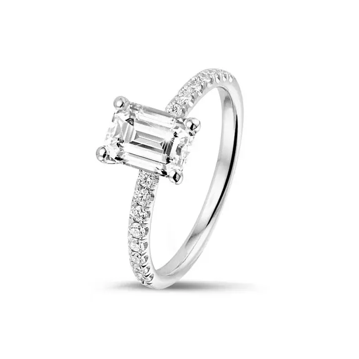 Emerald solitaire ring with side stones